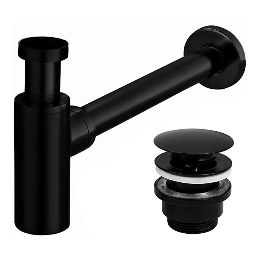 REA-A5215 - Sifão para lavatório com válvula CLICK-CLACK, diâmetro 6,4 cm, preto mate