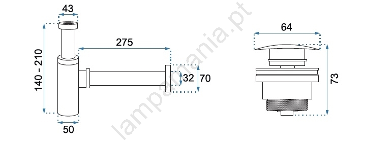 • O sifão é adequado para todas as pias com orifício de escoamento padrão de 45 mm.