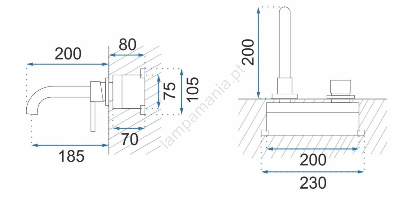 REA-B4109 - Misturadora de lavatório para instalação encastrada LUNGO, acabamento dourado escovado