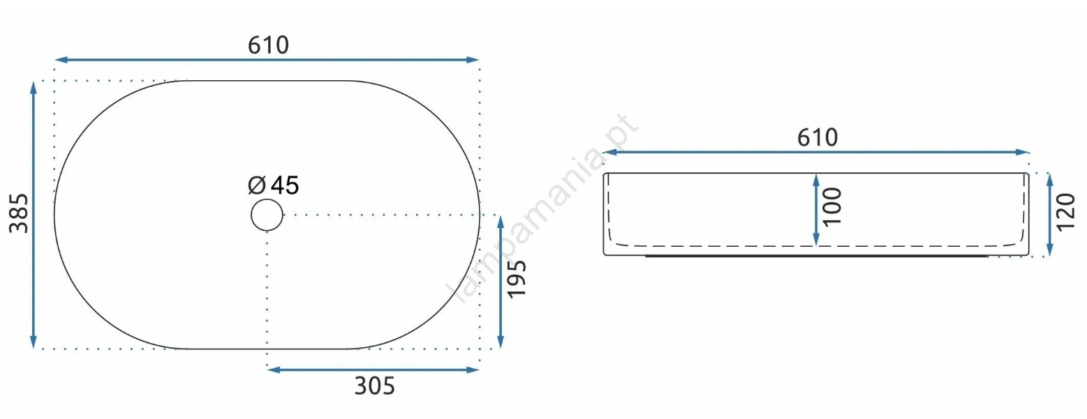 REA-U1055 - Lavatório de bancada NADIA 38,5x61 cm cerâmica/branco brilhante