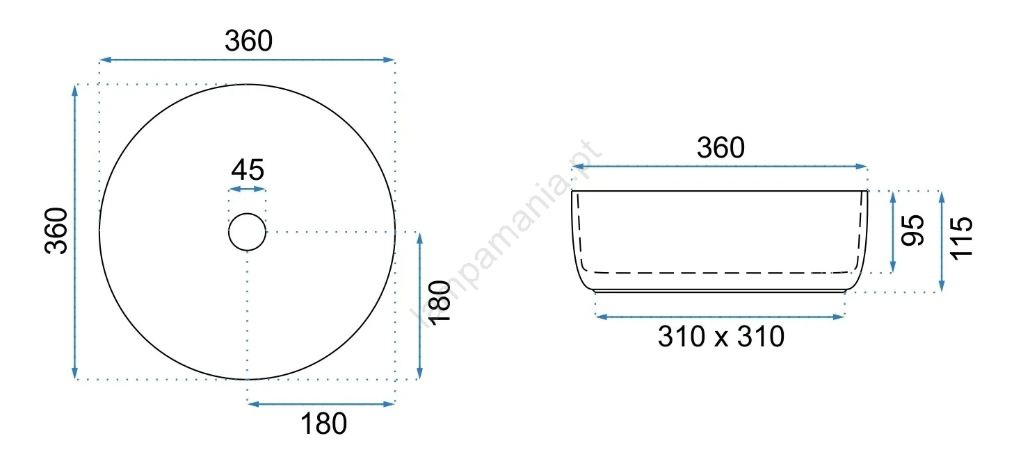 • REA-U18918 - Lavatório de bancada SAMI Ø 36 cm em cerâmica, acabamento branco brilhante