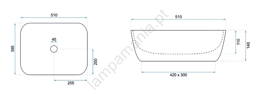 REA-U6647 - Lavatório de bancada FREJA 39,5x51 cm cerâmica/cinzento/decoração em mármore