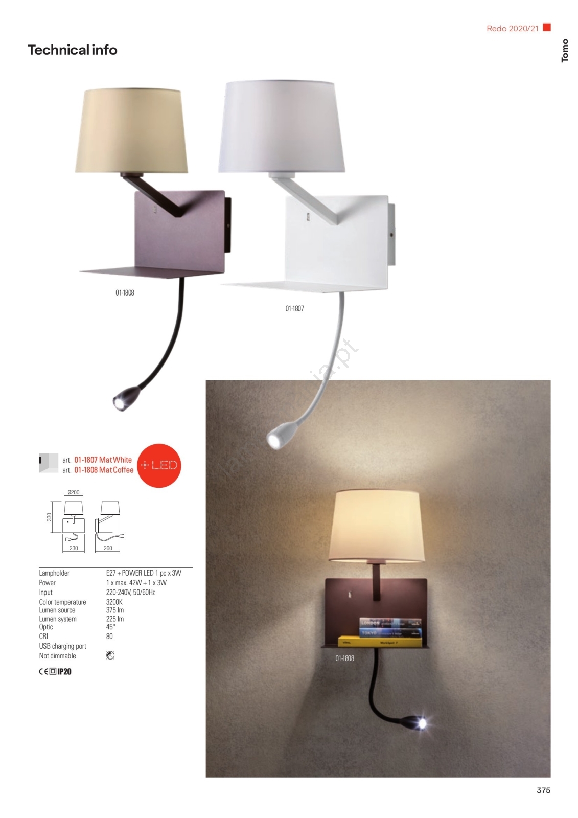 Redo 01-1807 - Iluminação de parede LED com uma pequena lâmpada flexível TOMO 1xE27/42W/230V + LED/3W/230V branco