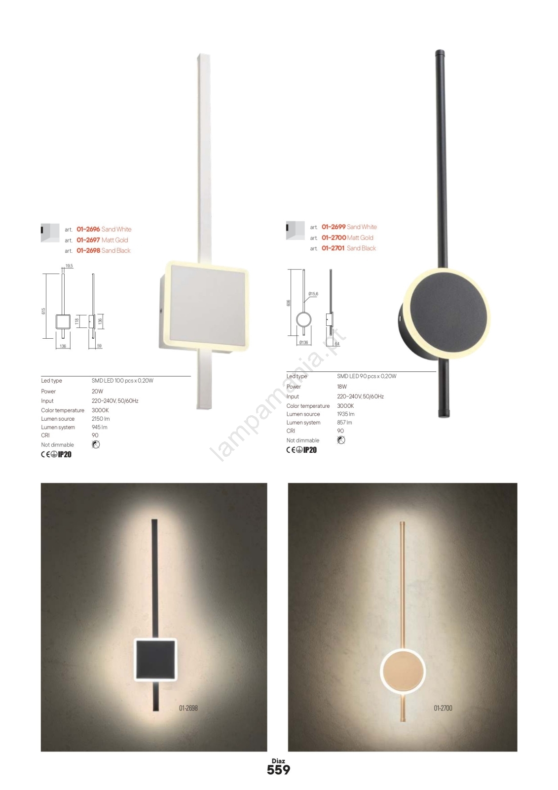 • Redo 01-2696 - Aplique de parede LED DIAZ LED/20W/230V CRI 90 branco