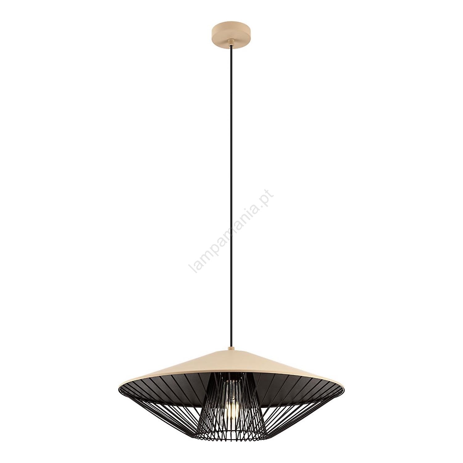 Redo 01-3011 - Lustre suspenso por cabo GRILL 1xE27/42W/230V diâmetro 49,5 cm preto/bege caracteriza-se por um design agradável e funcional.  Uma lâmpada com casquilho E27 é adequada para a iluminação Aqui, pode comprar outras lâmpadas a preços vantajosos. Terá um complemento interessante para a sua casa.
