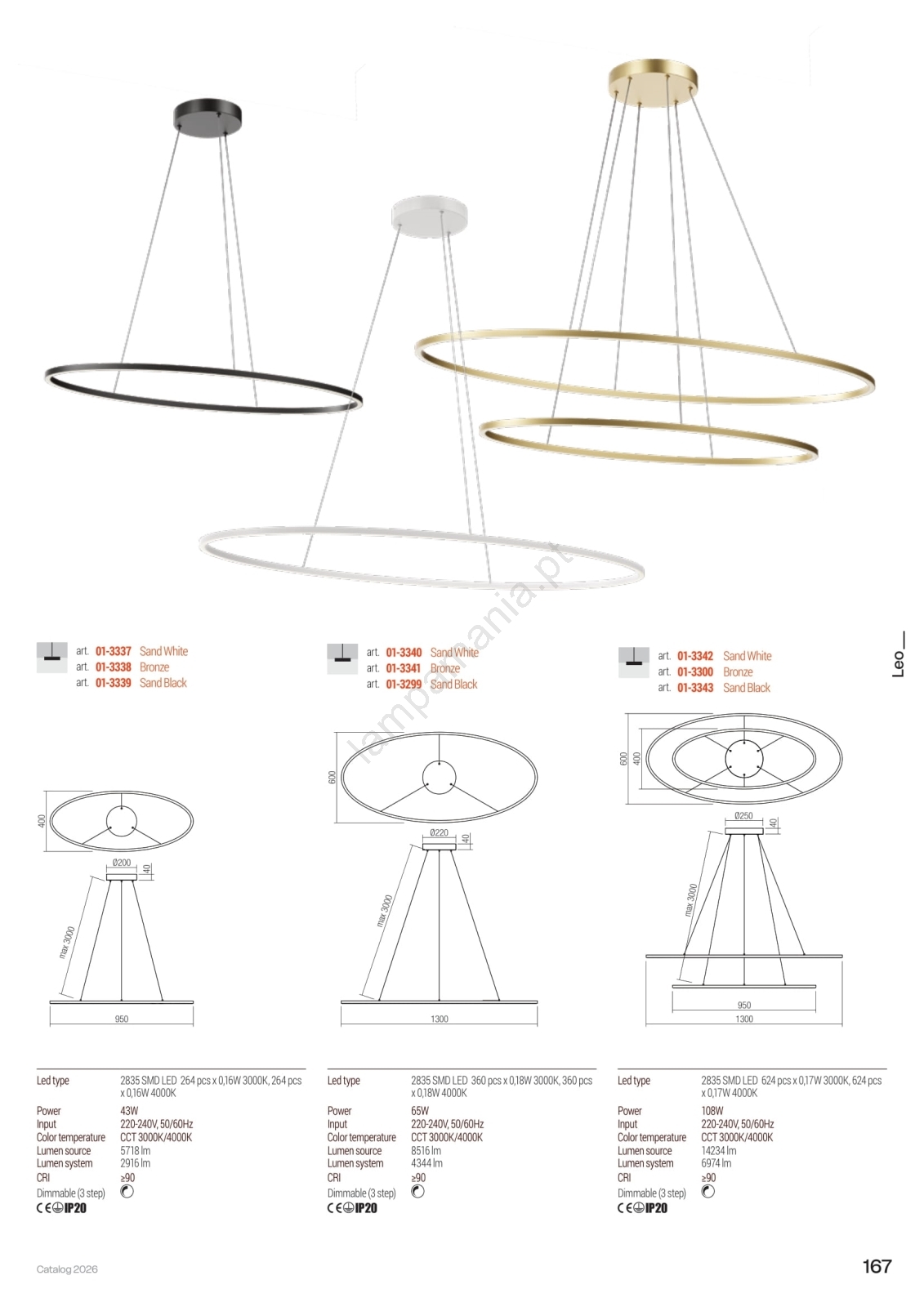 • Redo 01-3342 - Lustre LED dimerizável suspenso por cabo LEO LED/115W/230V 3000/4000K CRI 90 60x130 cm branco