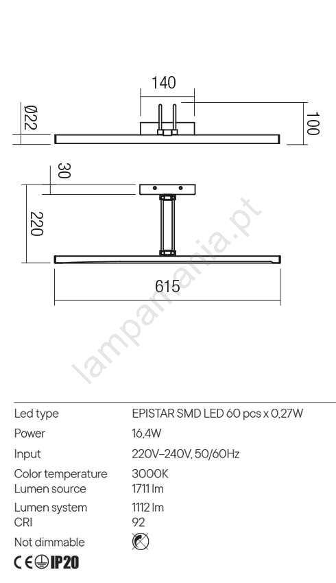 • Redo 01-3470 - Iluminação de ilustração LED IKON LED/16,4W/230V 61,5 cm CRI 92 branco
