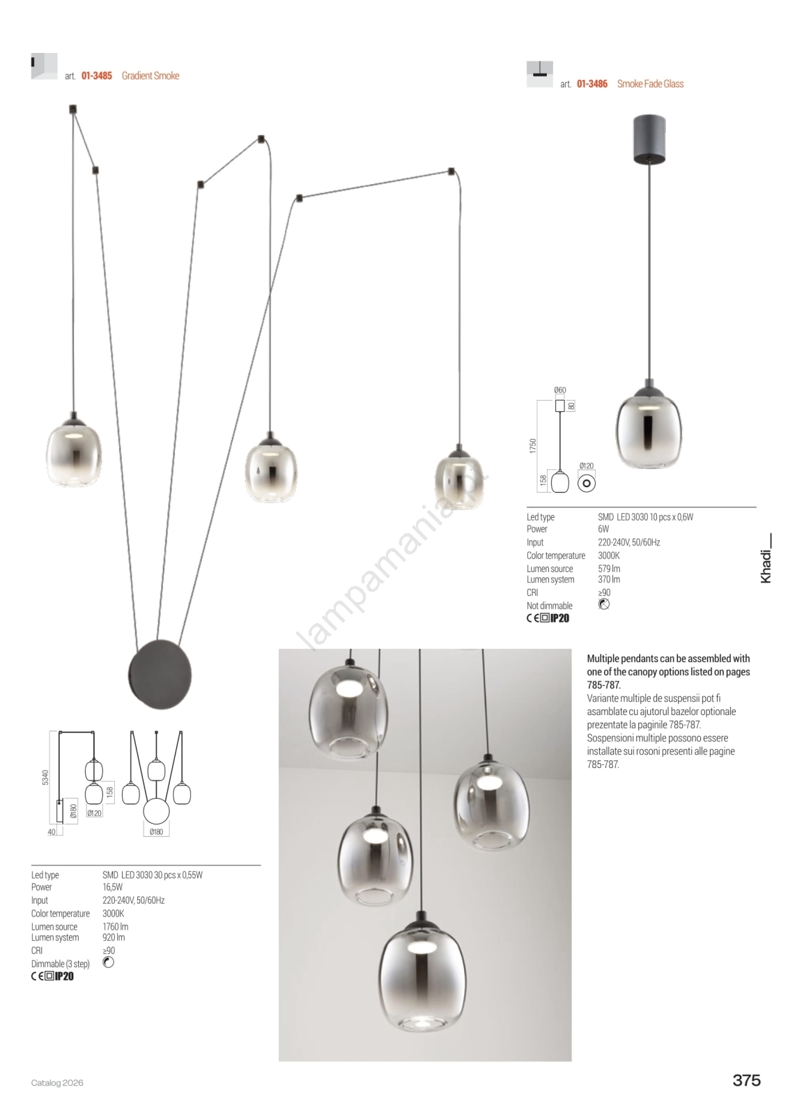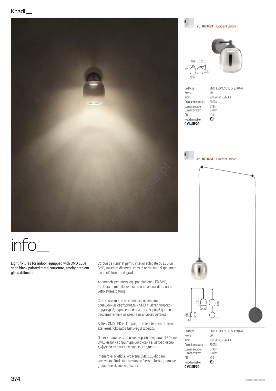 Redo 01-3486 - Lustre LED suspenso em cabo KHADI LED/6W/230V IRC 90 Ø 12 cm preto/fumado