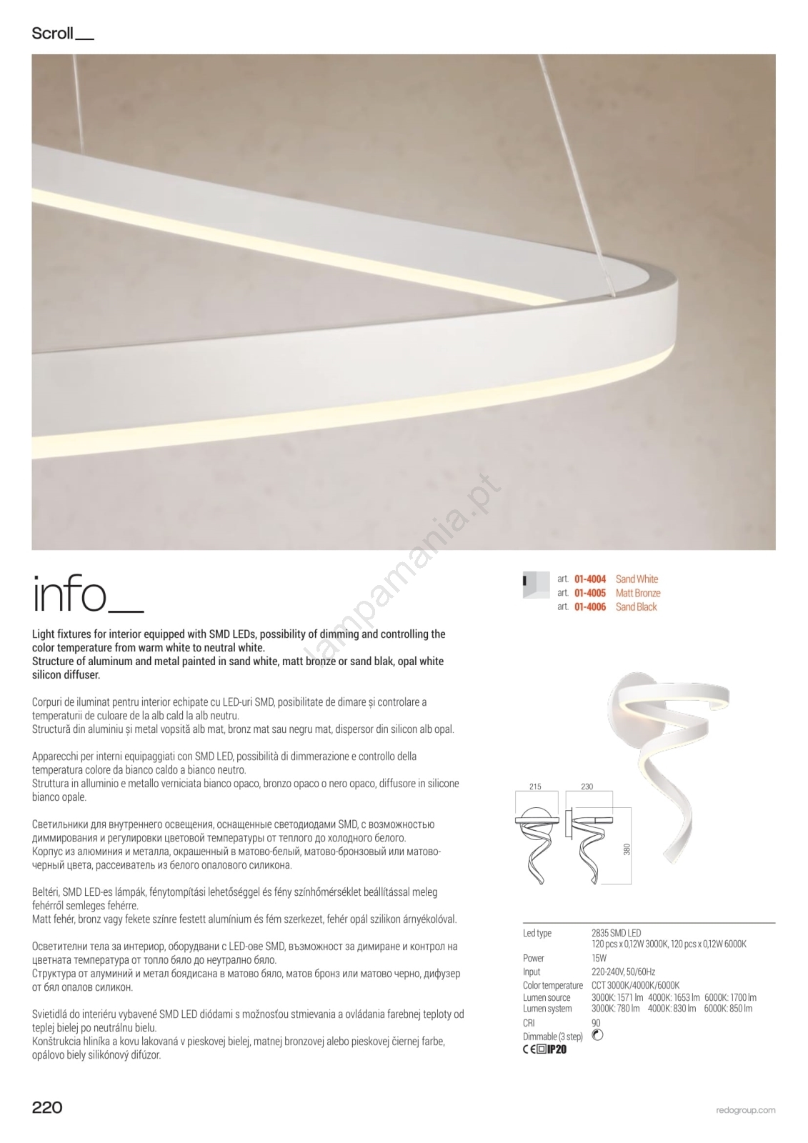• Redo 01-4281 - Candeeiro de pé LED dimerizável SCROLL LED/30W/230V 3000K/4000K/6000K CRI 90 branco