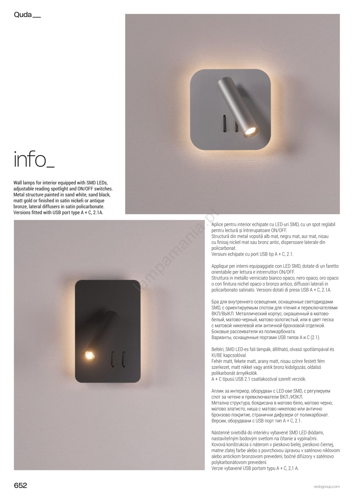 • Redo 01-2978 - Aplique de parede QUDA LED/6W/230V + LED/3W 3000K CRI 90 com USB, cromado mate