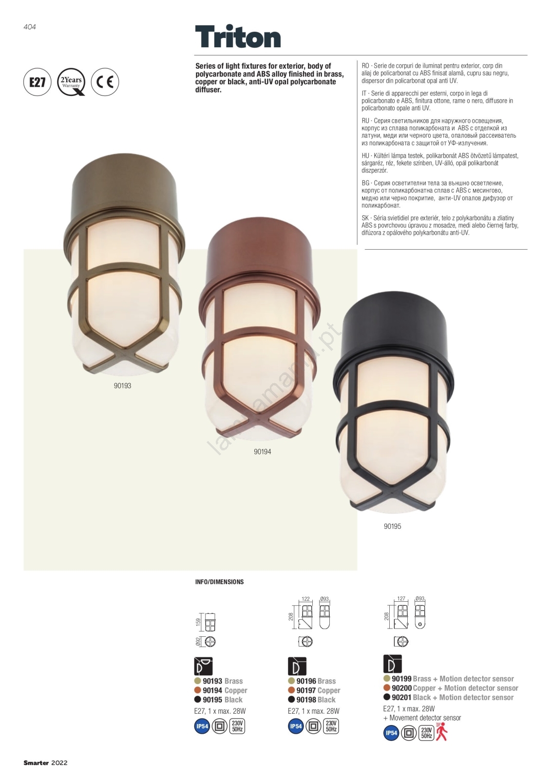 Redo 90193 - Foco exterior TRITON 1xE27/28W/230V IP54 latão caracteriza-se por um design agradável e funcional.  Uma lâmpada com casquilho E27 é adequada para a iluminação Aqui, pode comprar outras lâmpadas a preços vantajosos. Terá um complemento interessante para a sua casa.
