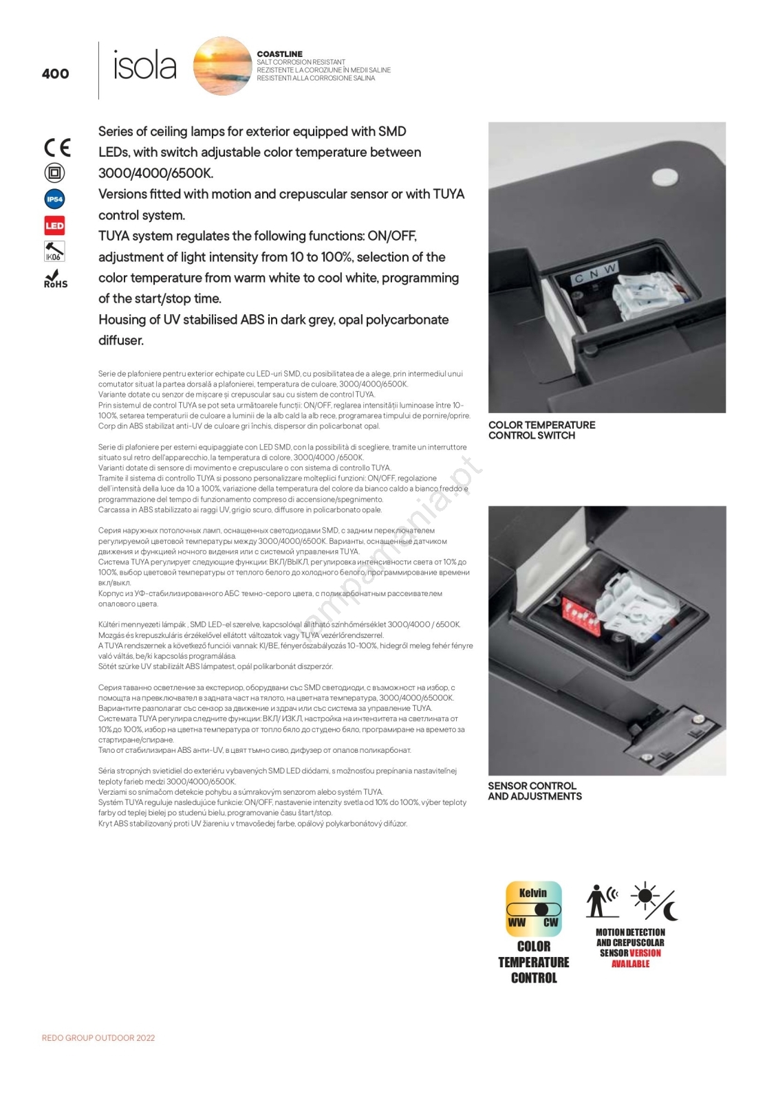 Redo 90290 - Iluminação de teto exterior LED com sensor ISOLA LED/24W/230V diâmetro 26 cm 3000/4000/6500K IP54 antracite
