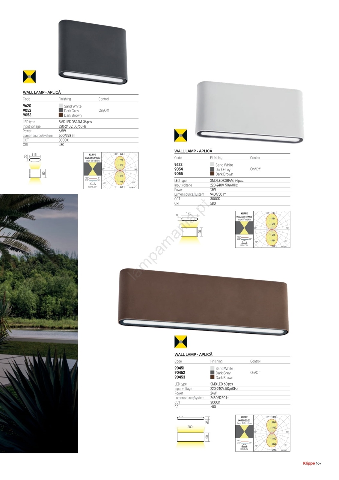 • Redo 90453 - Aplique de parede exterior LED KLIPPE LED/24W/230V 3000K IP54 castanho