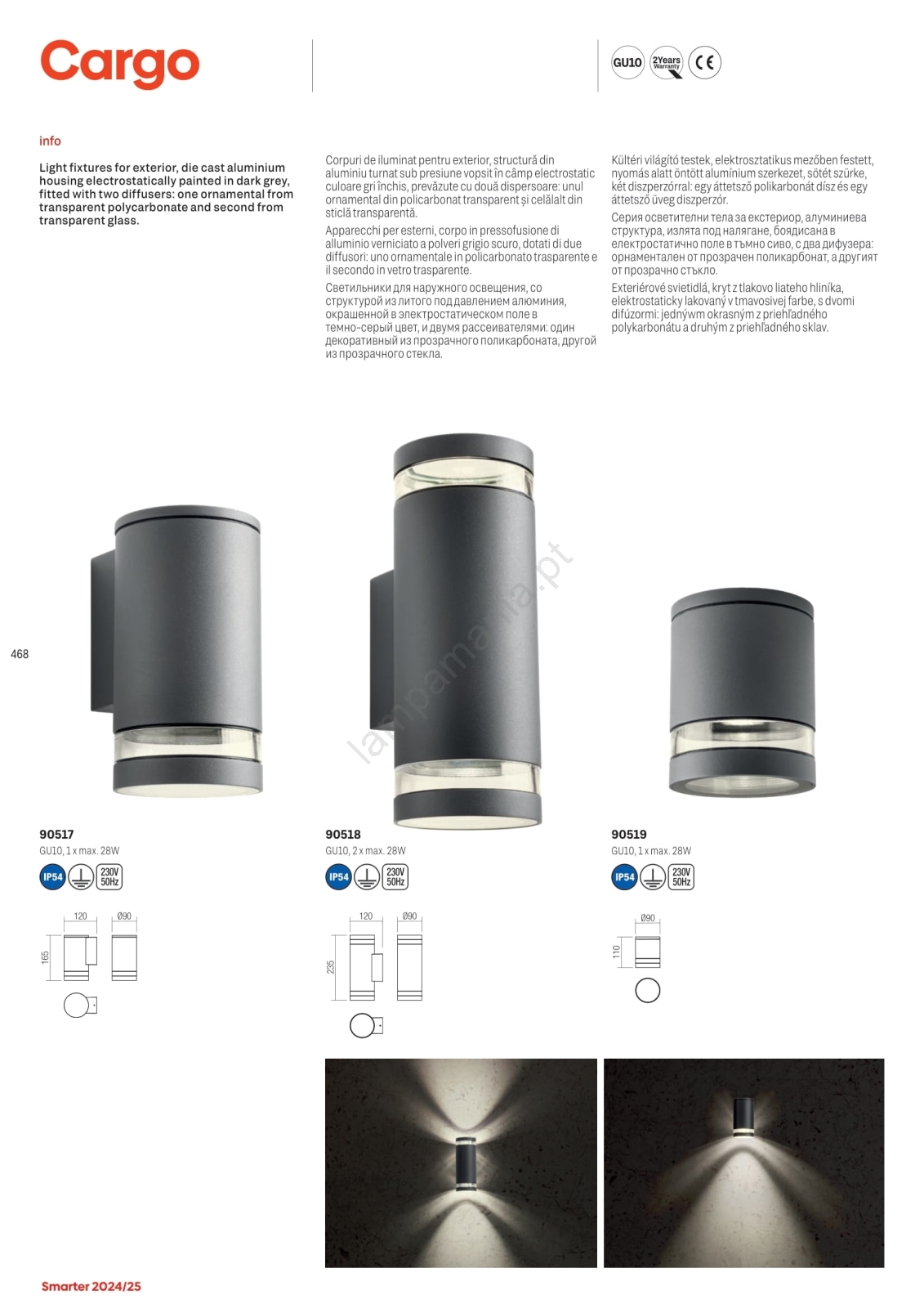Redo 90519 - Iluminação de teto exterior CARGO 1xGU10/28W/230V IP54 antracite caracteriza-se por um design agradável e funcional.  Uma lâmpada com casquilho GU10 é adequada para a iluminação Aqui, pode comprar outras lâmpadas a preços vantajosos. Terá um complemento interessante para a sua casa.