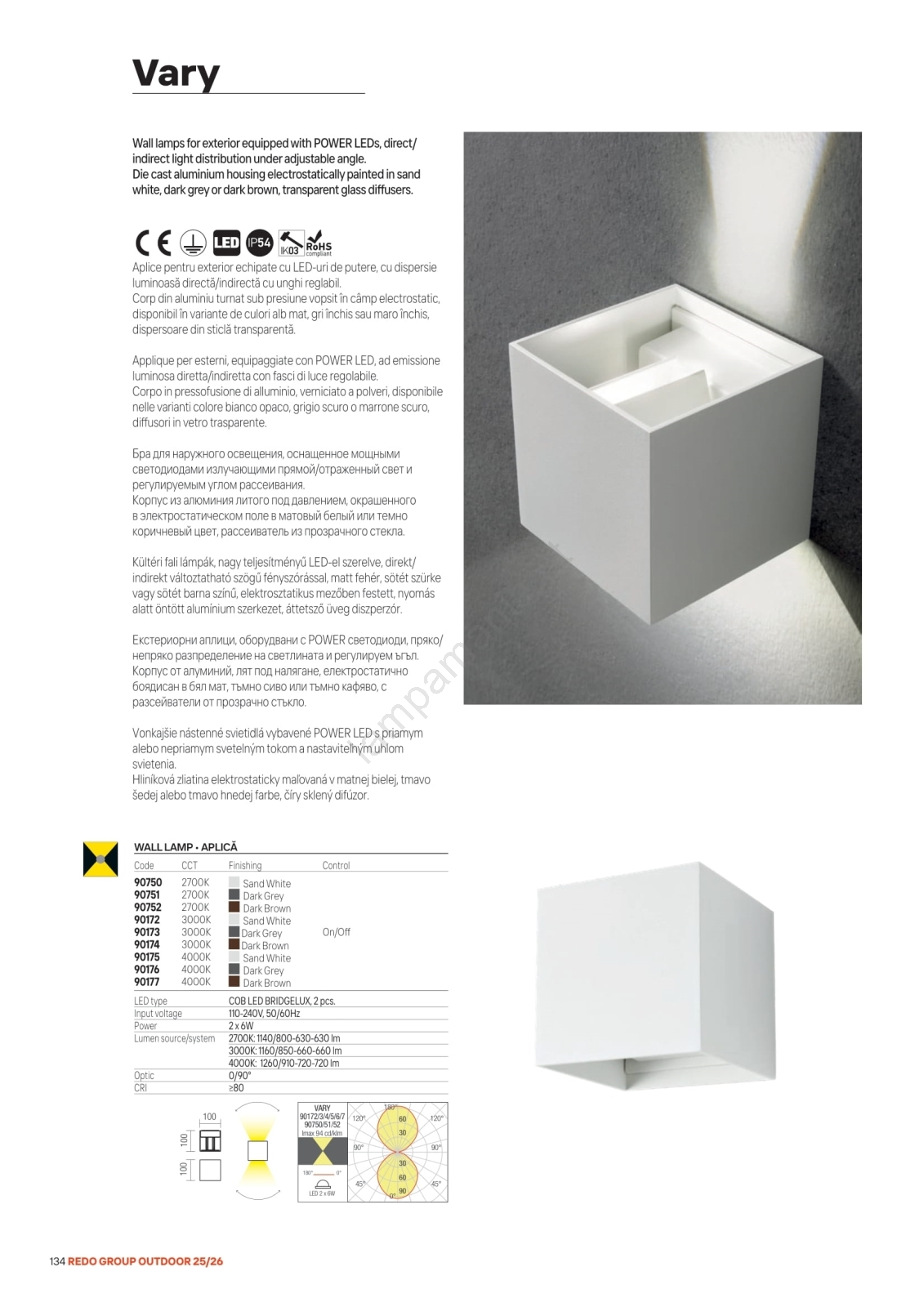 • Redo 90552 - Aplique de parede LED para exterior VARY 2xLED/10W/230V 3000K IP54 branco