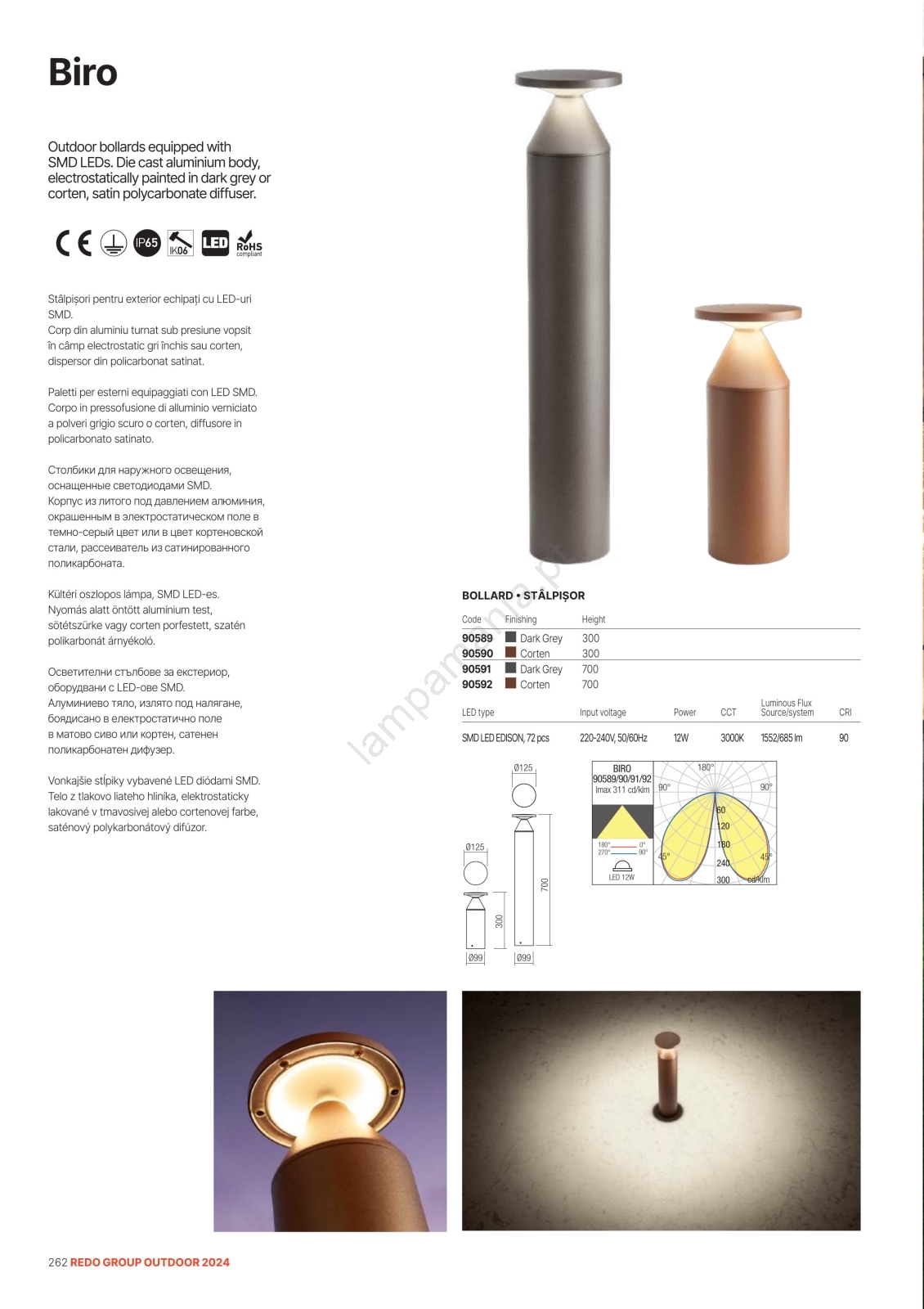 Redo 90589 - Luminária de exterior LED BIRO LED/12W/230V 3000K 30 cm IRC 90 IP65 antracite