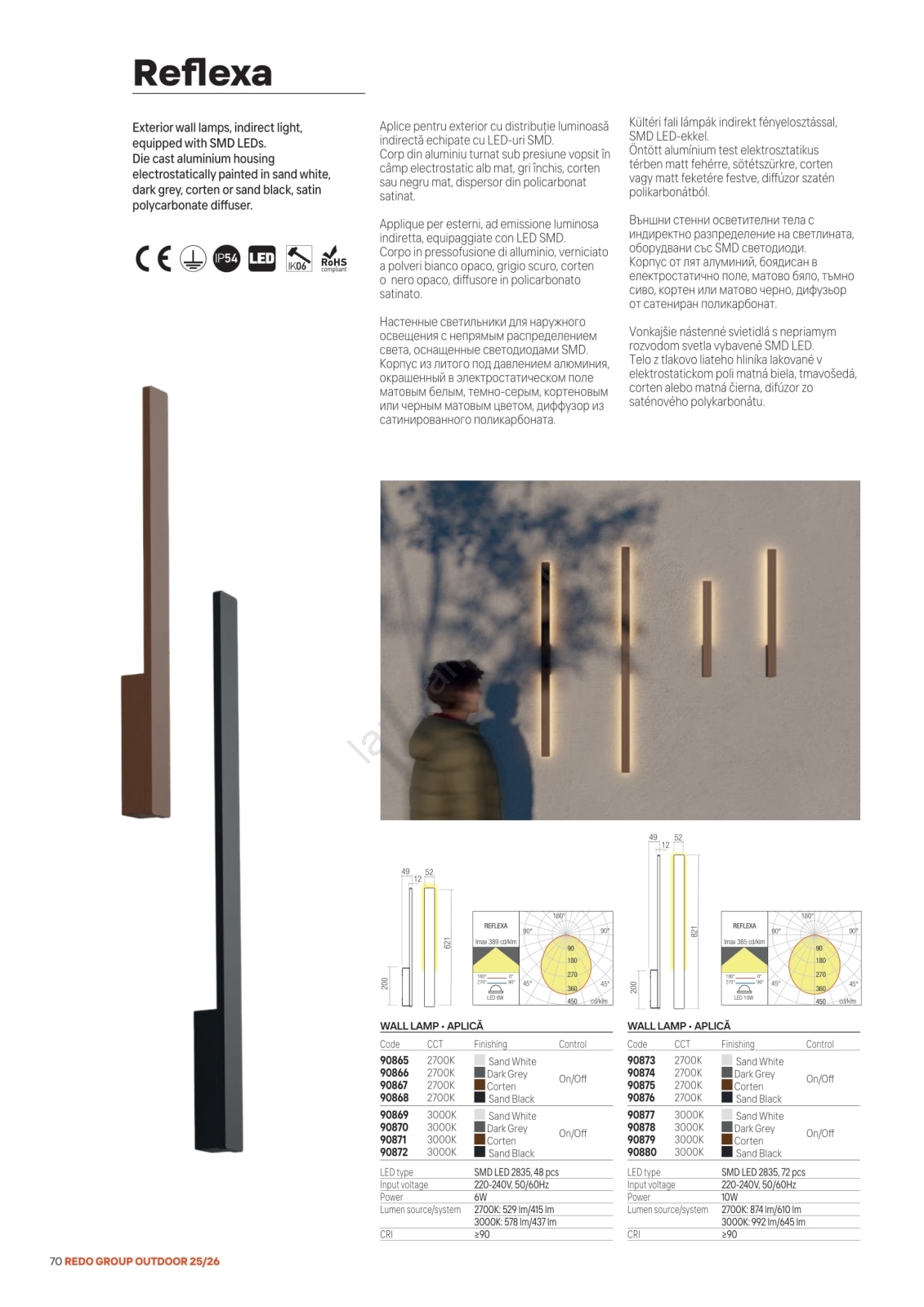 • Redo 90869 - Aplique de parede exterior LED REFLEXA LED/6W/230V 3000K 62,1 cm CRI 90 IP54 branco