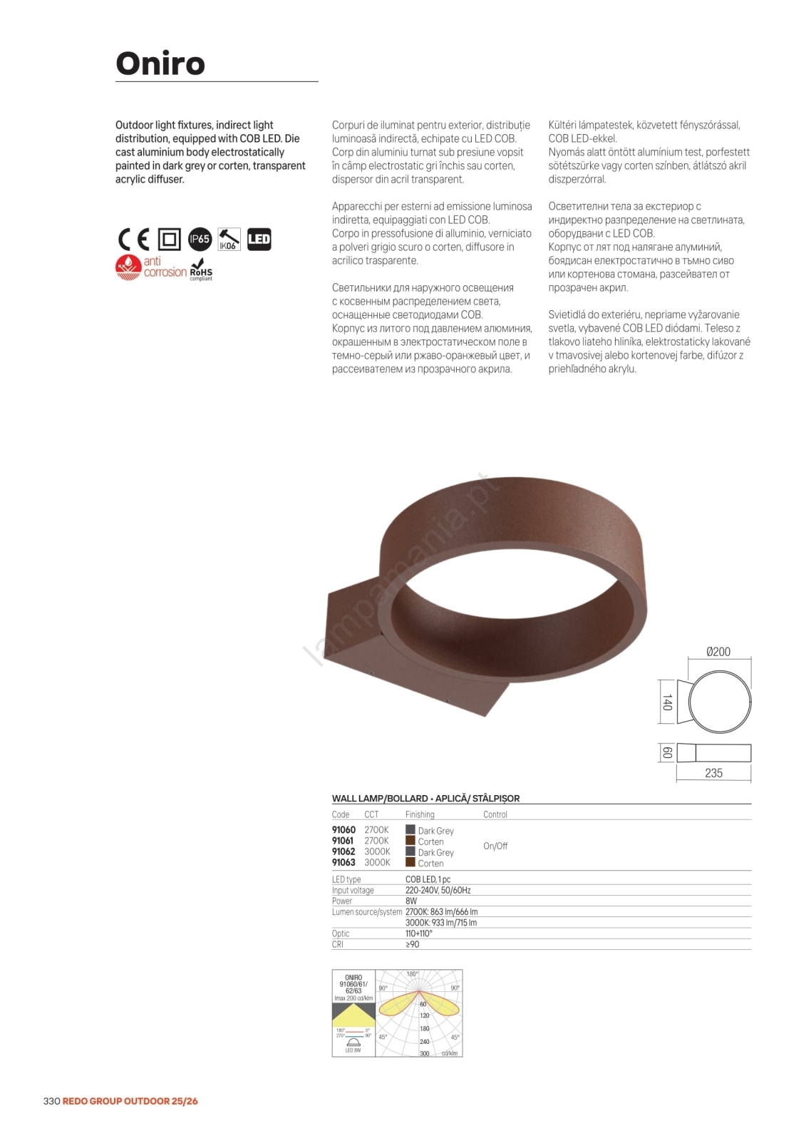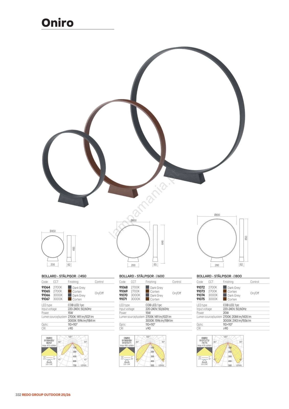 • Redo 91066 - Candeeiro exterior LED ONIRO LED/15W/230V 3000K 49,5 cm IRC 90 IP65 antracite