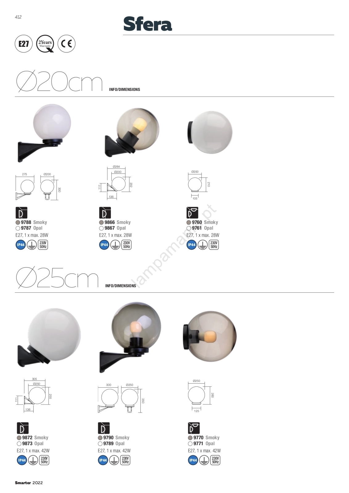 Redo 9771 - Abajur de substituição para luminária exterior SFERA diâmetro 25 cm IP44 branco