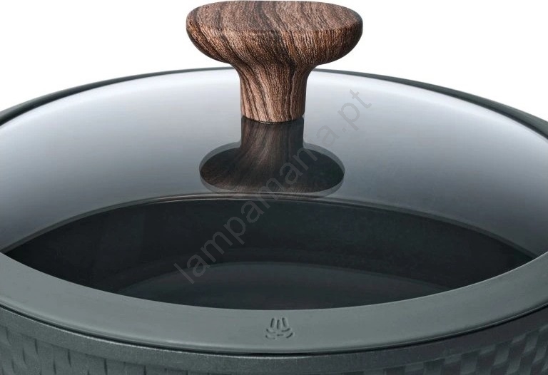 • Inclui uma tampa de vidro resistente com rebordo em silicone e válvula de escape de vapor, que permite acompanhar eficazmente o processo de cozedura sem perda de calor.