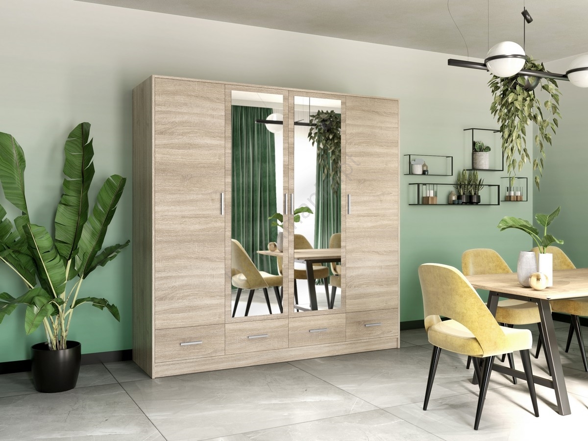 • Guarda-roupa com espelho SANNA 200x215 cm carvalho sonoma