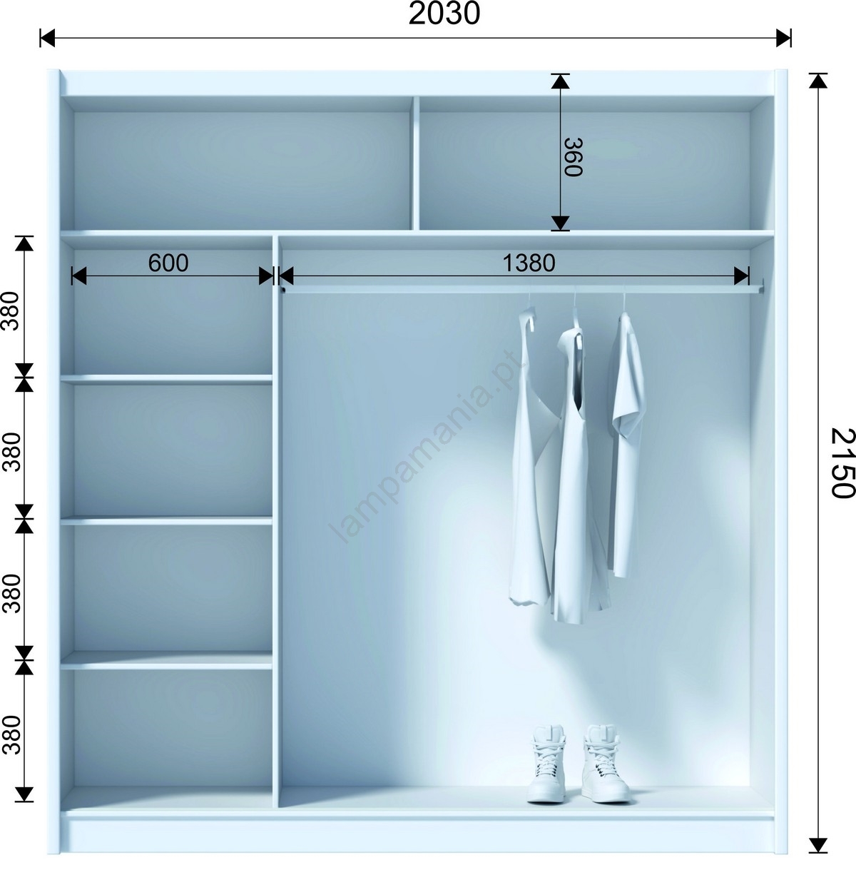 • A superfície espelhada do guarda-roupa é a combinação perfeita de funcionalidade e estética, permitindo-lhe ver-se em todo o seu esplendor.