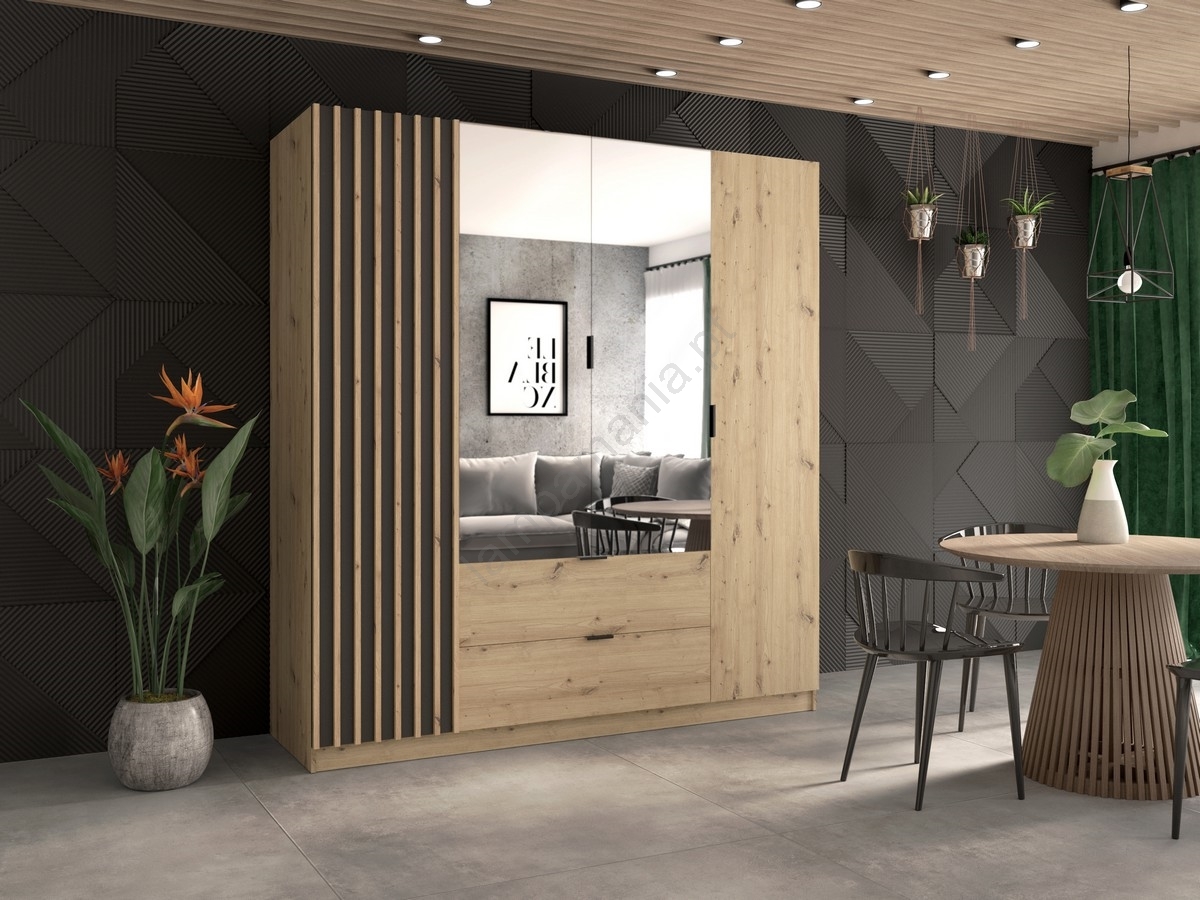 Guarda-roupa com espelho VISTA 200x215 cm carvalho artisan/grafite