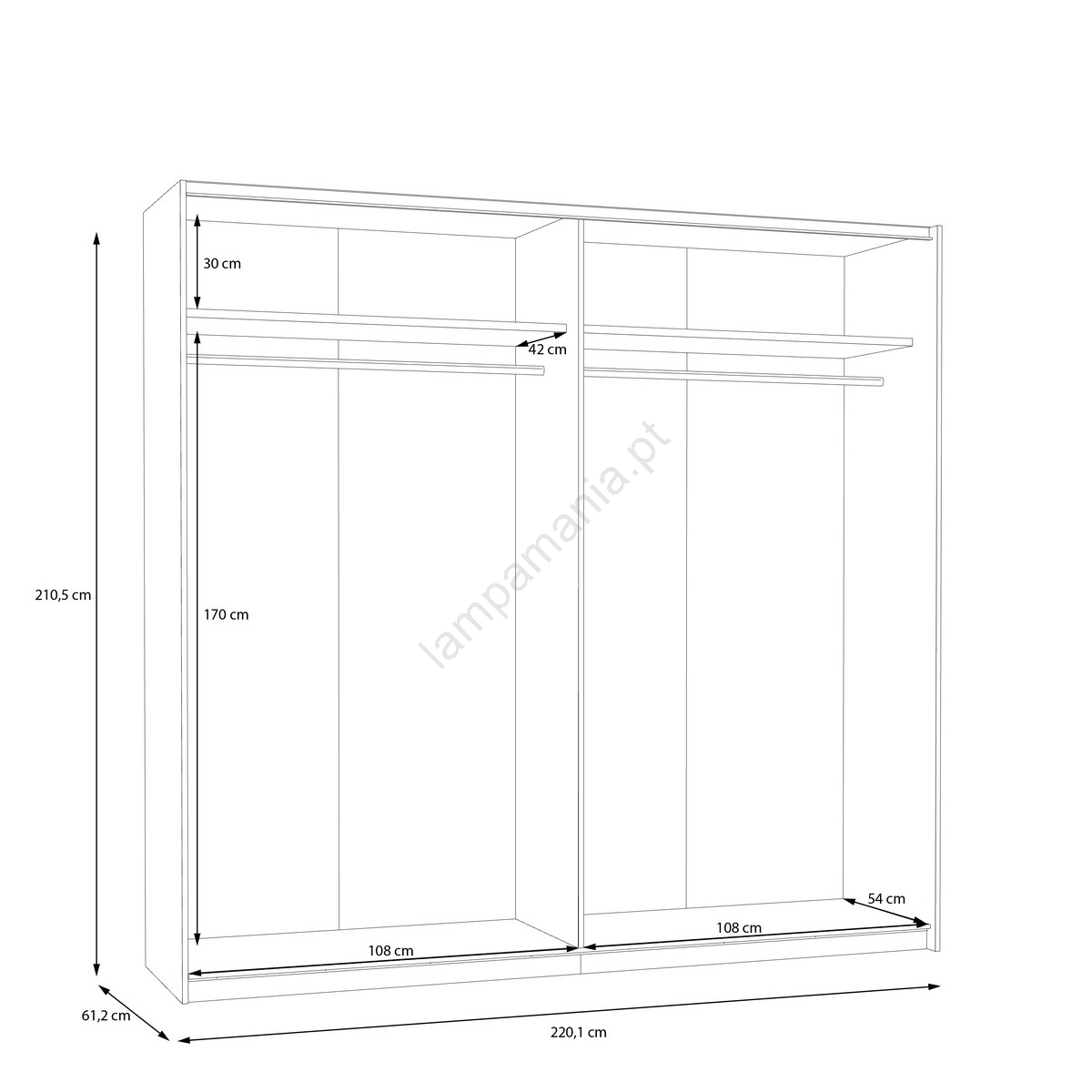• O guarda-roupa inclui varões para cabides, prateleiras e um amplo espaço de arrumação para as suas roupas, bolsas e artigos sazonais.
