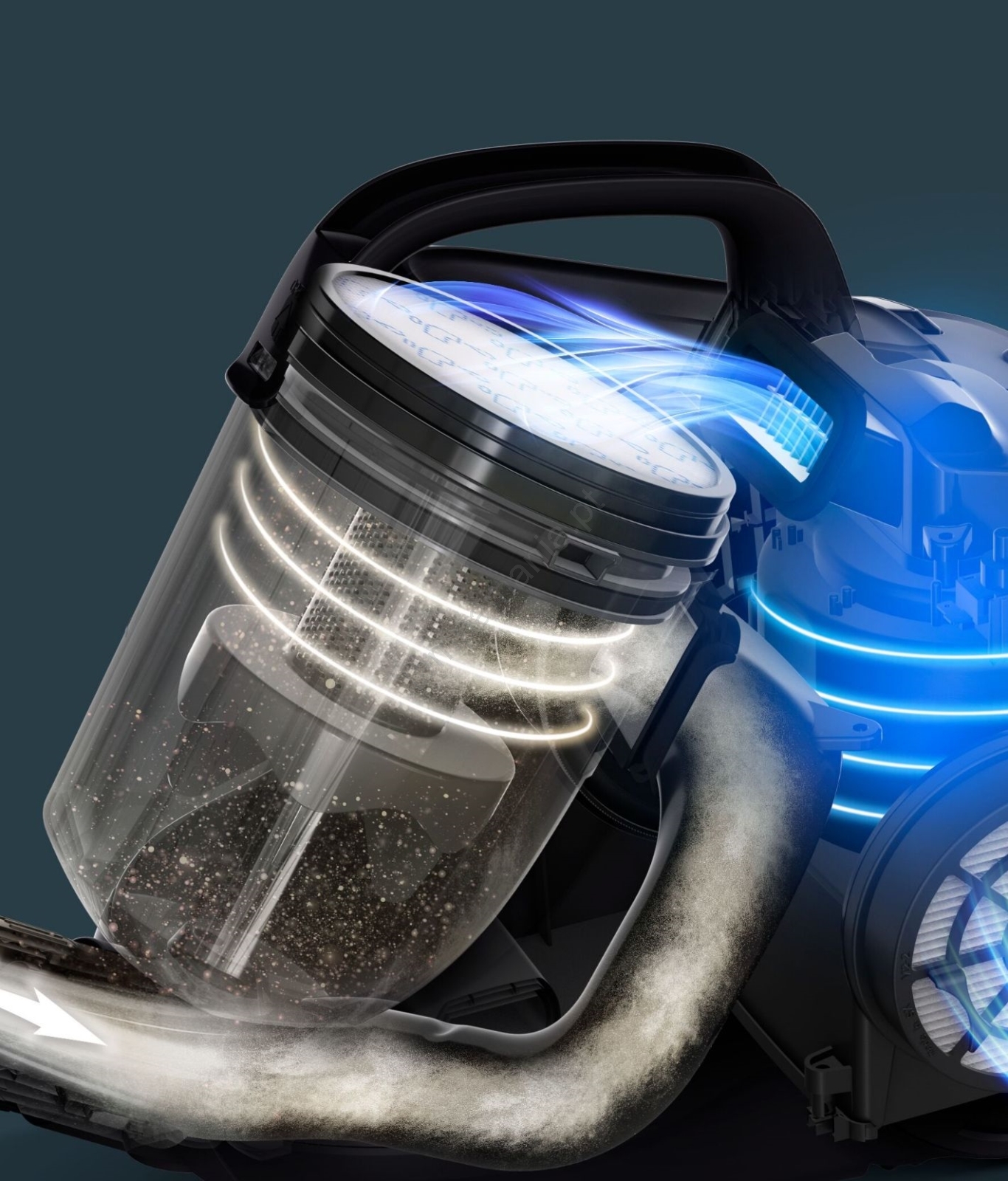• Tecnologia avançada monociclone proporciona filtragem em dois níveis, capturando até 99,98% do pó aspirado (filtro HEPA).