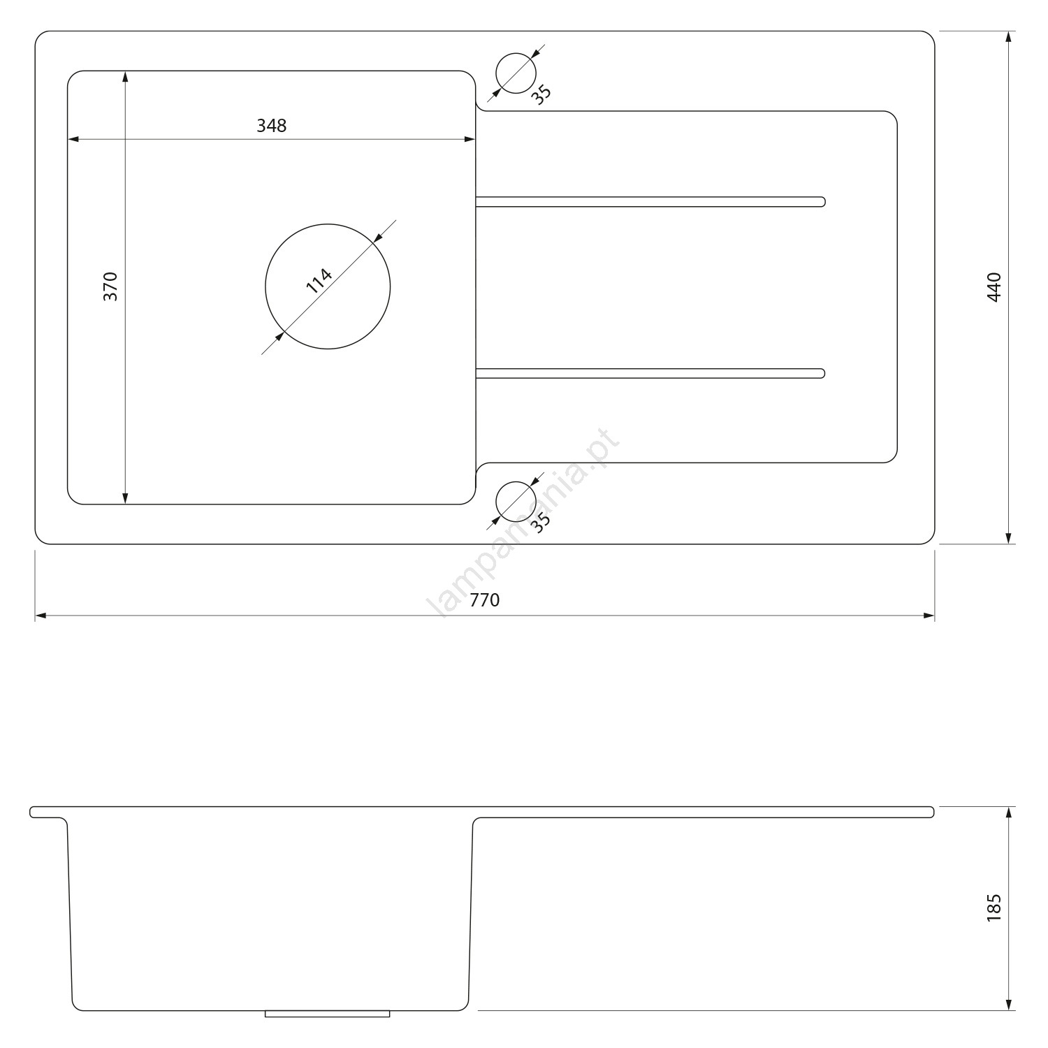 • Destina-se à montagem superior e inclui um sifão com derivação para máquina de lavar loiça ou máquina de lavar roupa.