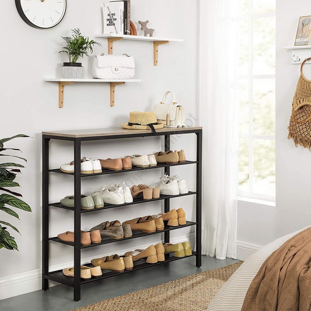• Com carga máxima de 10 kg na superfície superior e 5 kg em cada prateleira, esta sapateira acomoda com segurança todos os seus sapatos, bolsas e objetos de decoração.
