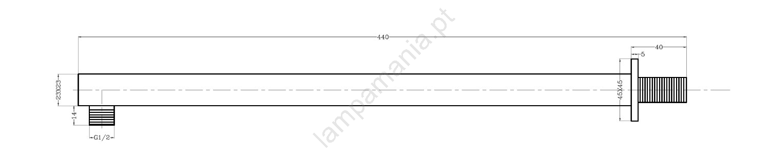 Sapho - Braço de chuveiro angular 44 cm cromado brilhante