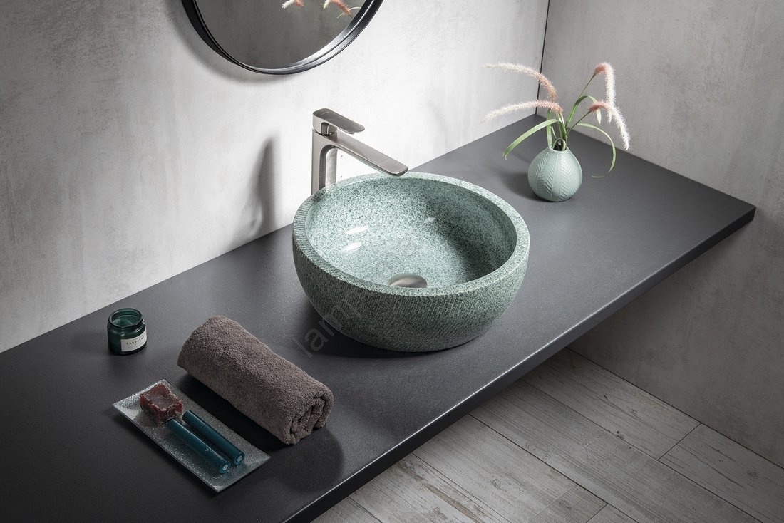 • O lavatório é fabricado em material natural.