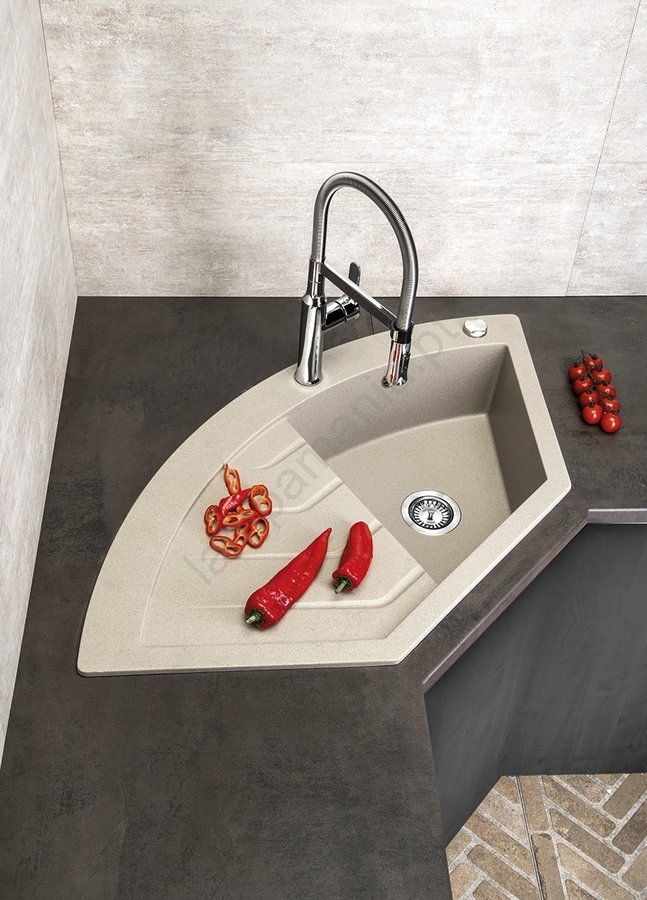 Sapho - Cuba de cozinha de canto 114x57,5 cm granito/bege