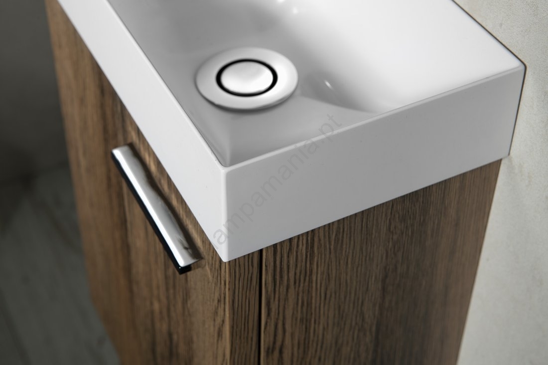 • É concebido para montagem na parede e possui um furo para misturador à esquerda.