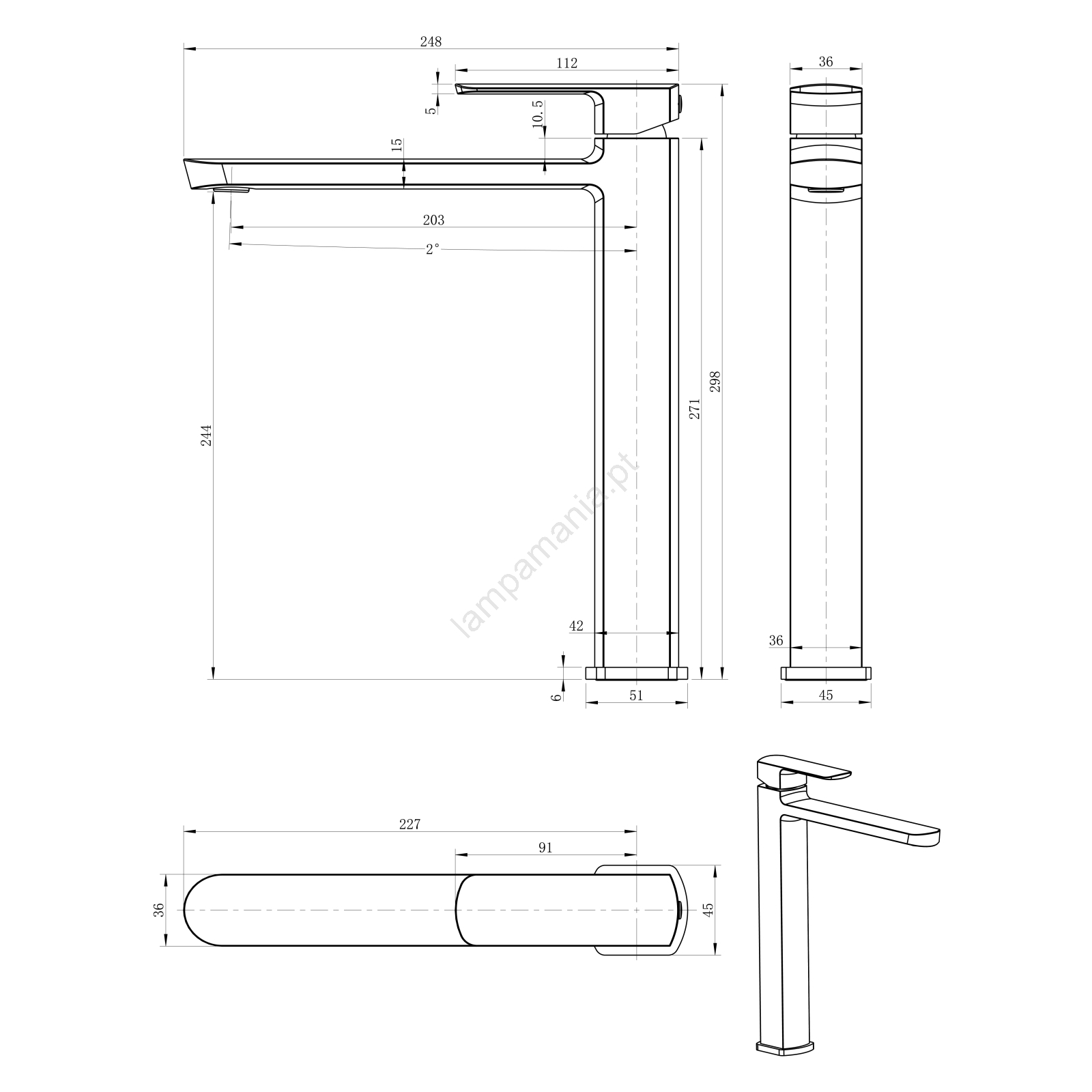 • Esta torneira de lavatório apresenta um corpo sutil e um design moderno.