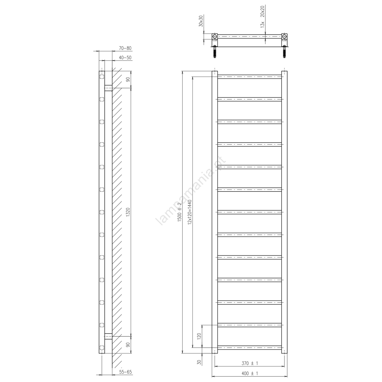 Sapho - Radiador para casa de banho METRO DOS 323W 40x150 cm preto mate