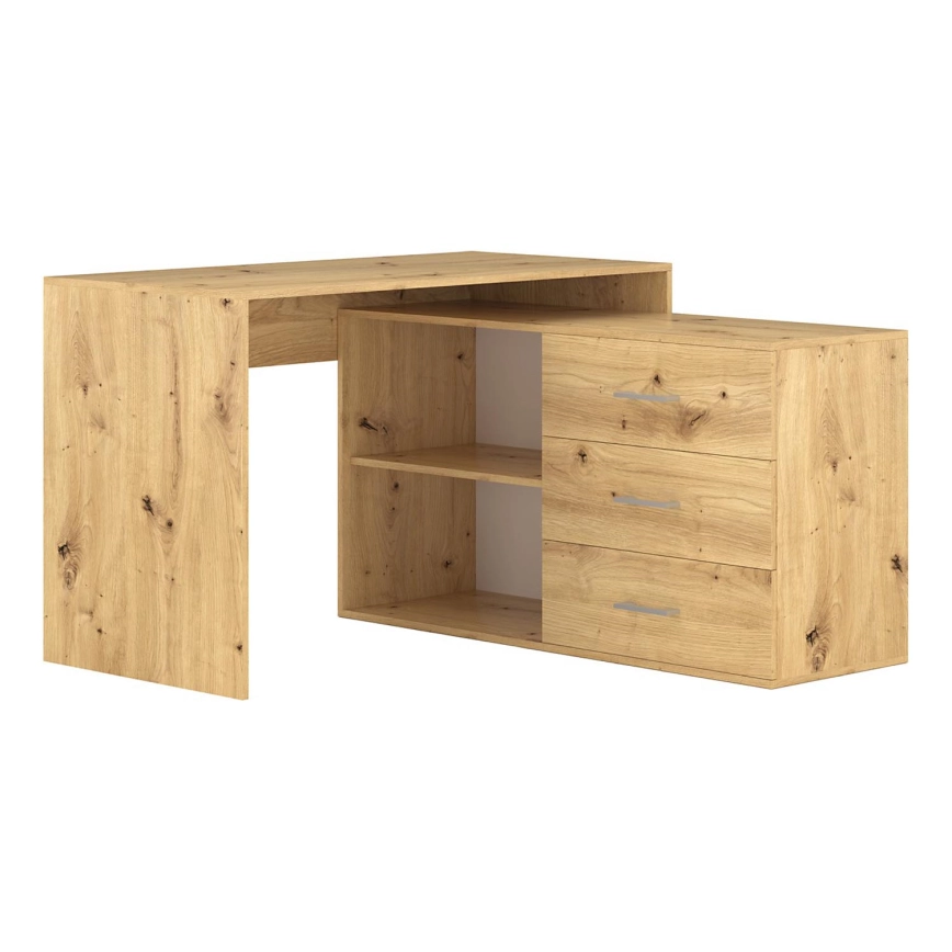 • Secretária JULES com gavetas e canto reversível D/E, Carvalho Artisan