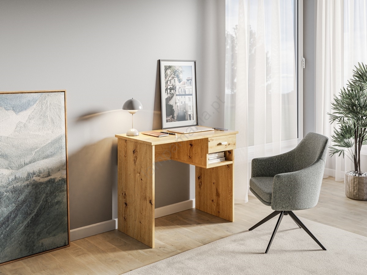 • Oferece uma ampla área de trabalho, um compartimento aberto para livros ou acessórios e uma gaveta para organizar o seu espaço.