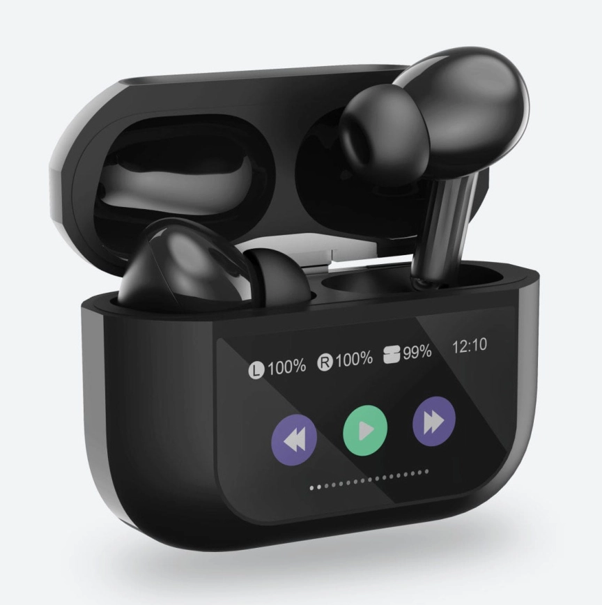 • Tela LCD sensível ao toque – acompanhe o status da bateria e controle os fones sem precisar pegar o telefone.