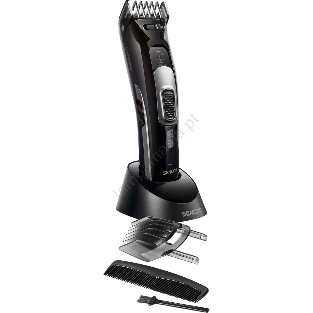 • Acessórios: suporte prático, adaptador de alimentação, 2 pentes, escova de limpeza, óleo para a unidade de corte.