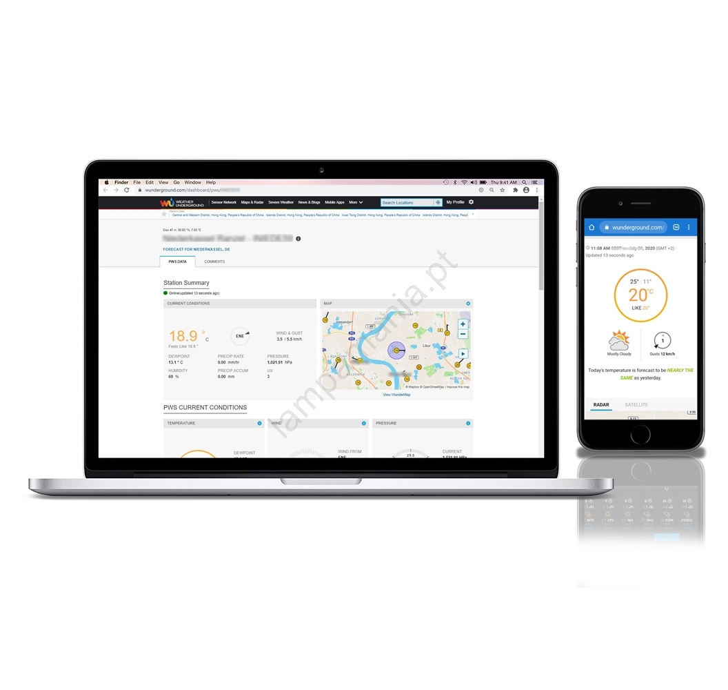 • Suporta acesso online a históricos, dados e às plataformas meteorológicas públicas globais „Weather Underground" e „Weathercloud".