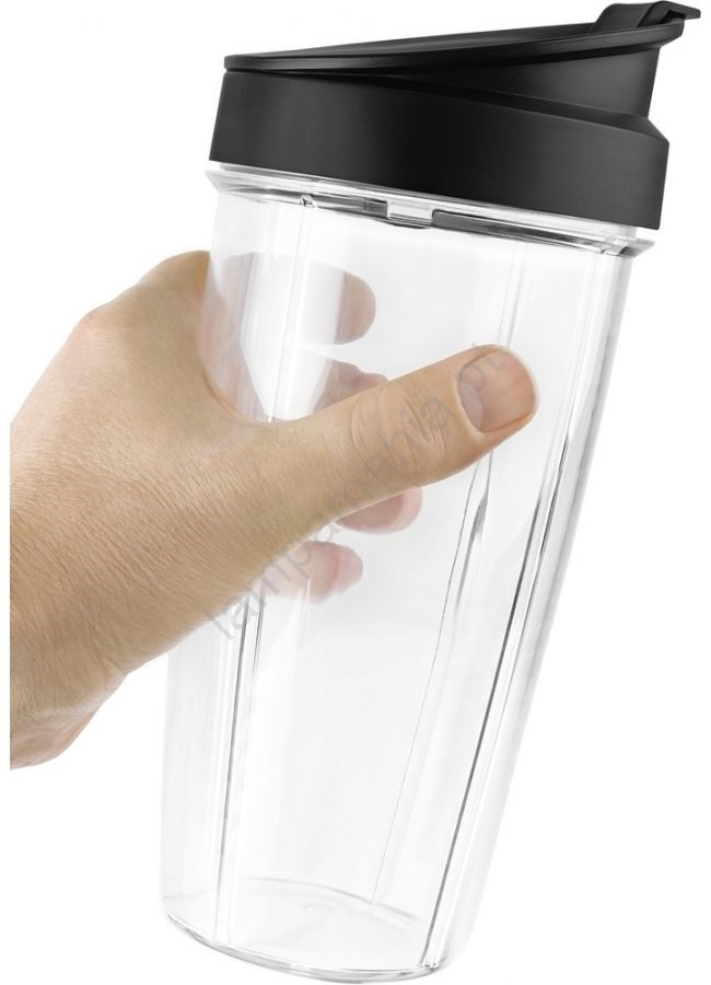 • Após a mistura, basta trocar a tampa com lâmina por uma tampa prática e o recipiente de mistura se transforma instantaneamente em uma garrafa portátil para beber.