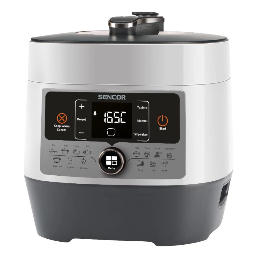Sencor - Panela de pressão elétrica multifuncional 5,5 l 1000W/230V branco/preto