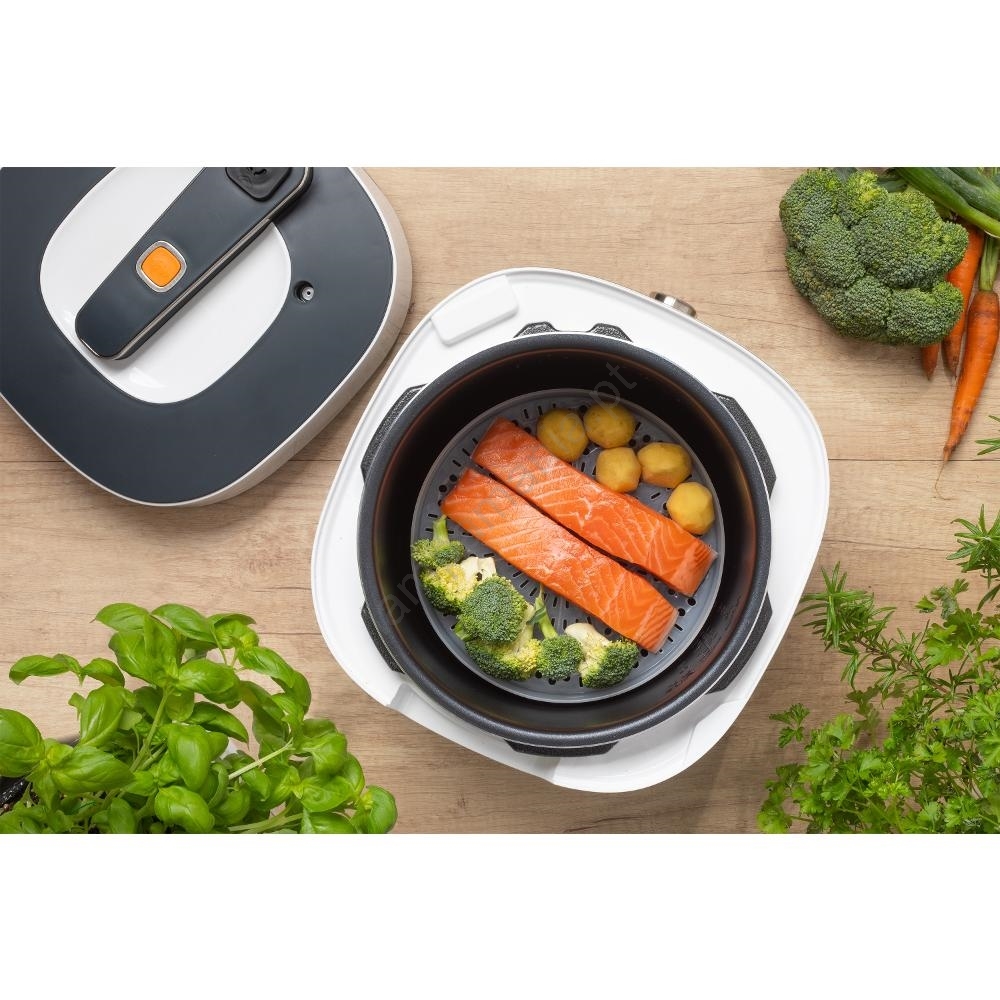 • Panela de pressão elétrica com capacidade de 5,5 l que permite cozinhar para toda a família de uma só vez.