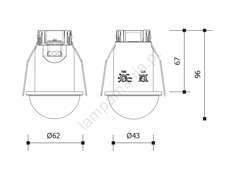 • Ajuste de sensibilidade: 3 - 2000 lx.