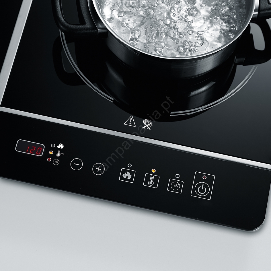 • Fogão de indução portátil com duas zonas.
