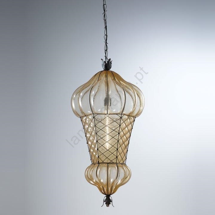 • SIRU - Candeeiro suspenso BABÀ 1xE27/60W/230V diâmetro 30 cm transparente/castanho Vidro veneziano