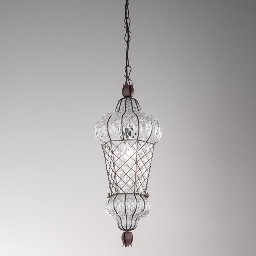 SIRU - Candeeiro suspenso BABÀ 1xE27/60W/230V diâmetro 30 cm transparente/castanho Vidro veneziano caracteriza-se por um design agradável e funcional.  Uma lâmpada com casquilho E27 é adequada para a iluminação Aqui, pode comprar outras lâmpadas a preços vantajosos. Terá um complemento interessante para a sua casa.