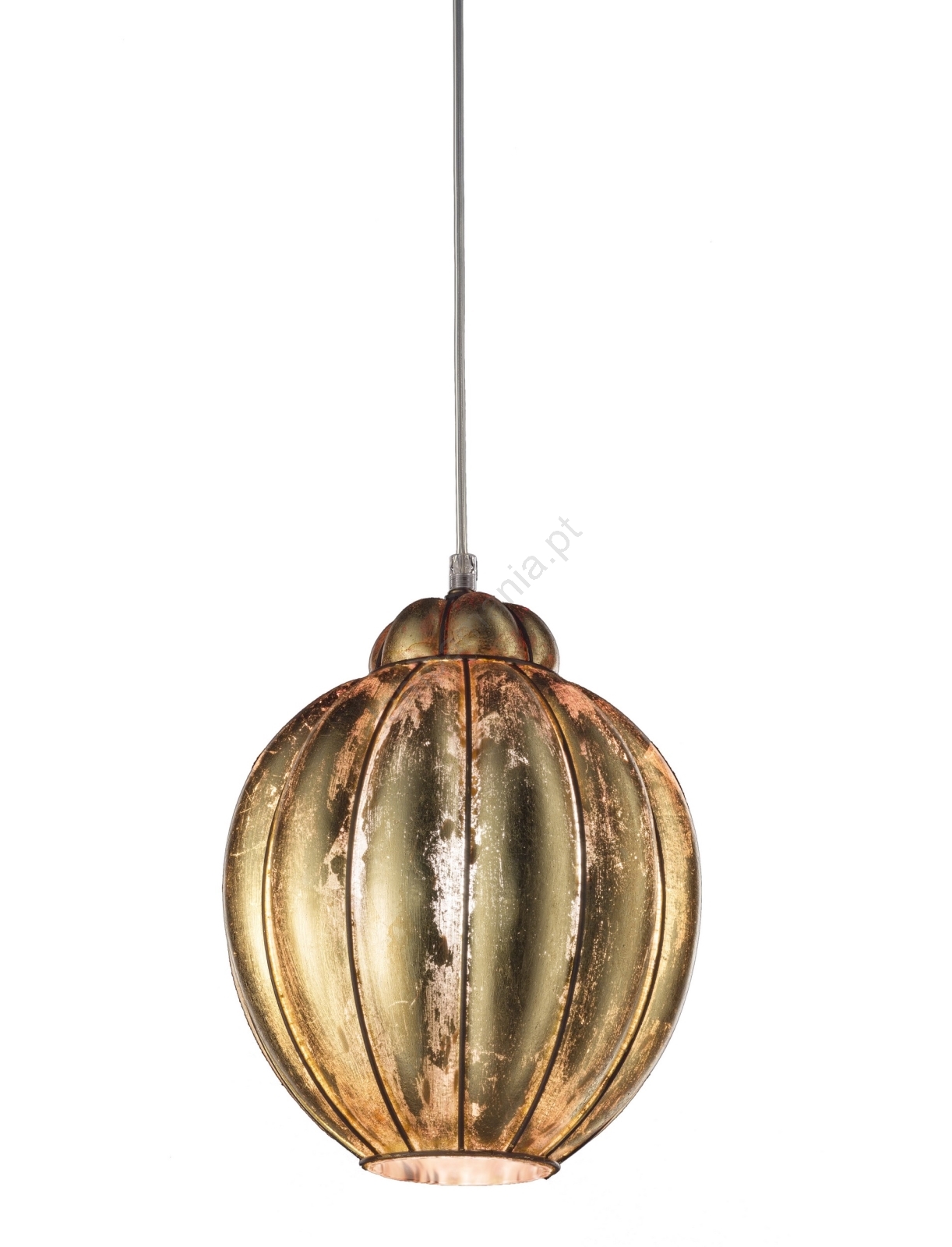 SIRU - Candeeiro suspenso FOGLIA ORO 1xE27/60W/230V diâmetro 25 cm dourado Vidro veneziano/dourado caracteriza-se por um design agradável e funcional.  Uma lâmpada com casquilho E27 é adequada para a iluminação Aqui, pode comprar outras lâmpadas a preços vantajosos. Terá um complemento interessante para a sua casa.